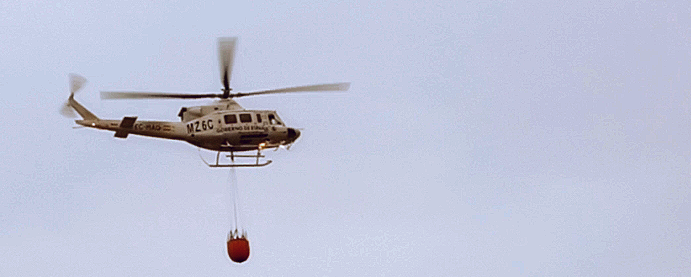 This photograph is ours, and it shows a Bell 412 that spent an entire afternoon and evening fighting a fire that remained dangerously close for six days. There were many fires in this area, so the Canadair water bombers were deployed to the most significant fires.