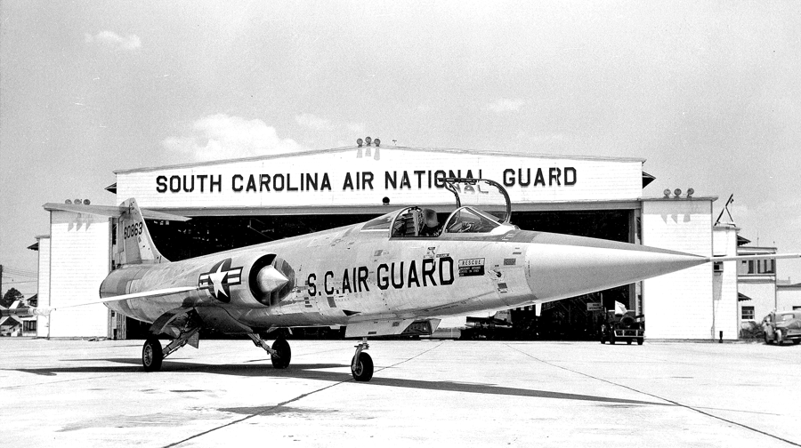 F-104 fighter on the ramp at the South Carolina Air National Guard Base, Congaree Air Field. 1960s era photo, courtesy of 169th FIGHTER WING of the United States of America.