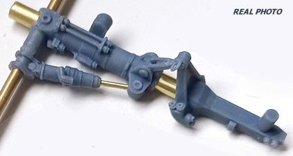The real photograph shows actual models of Mirage IIIE rear landing gear, made of resin and brass.